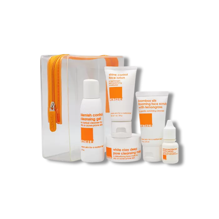 A perfect introduction to LATHER skin care, this travel-friendly kit contains everything you need to clear pores, control shine, and promote clear skin.